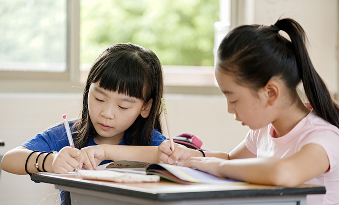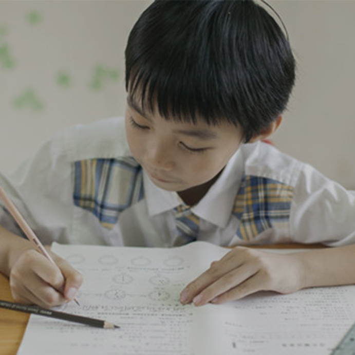 ①选图:选用小朋友正在做作业的场景图,但未突出课程特色;