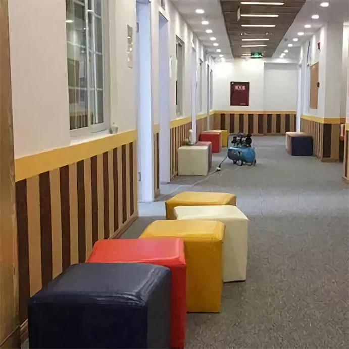 ①选图:选用幼儿园走廊图片,物品杂乱,幼儿园特质不明显,特色不突出;