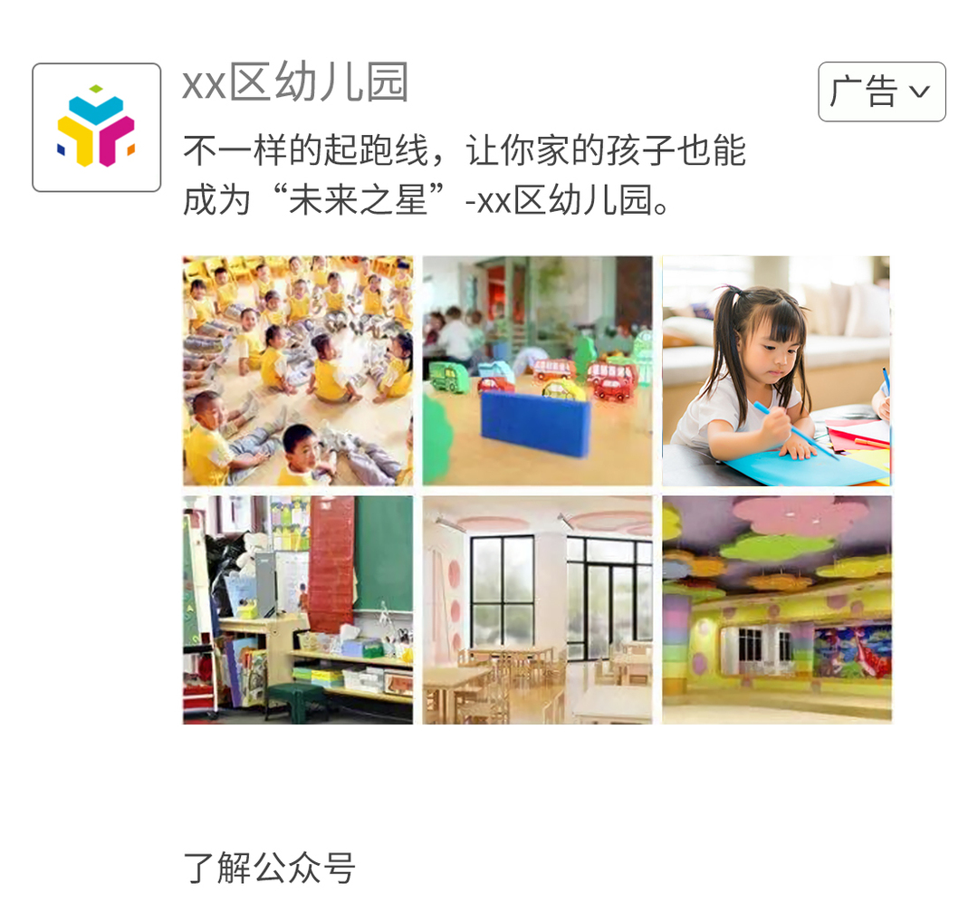 此案例做幼儿园招生推广,图片经过优化,点击率提升200%。优化分析如下: