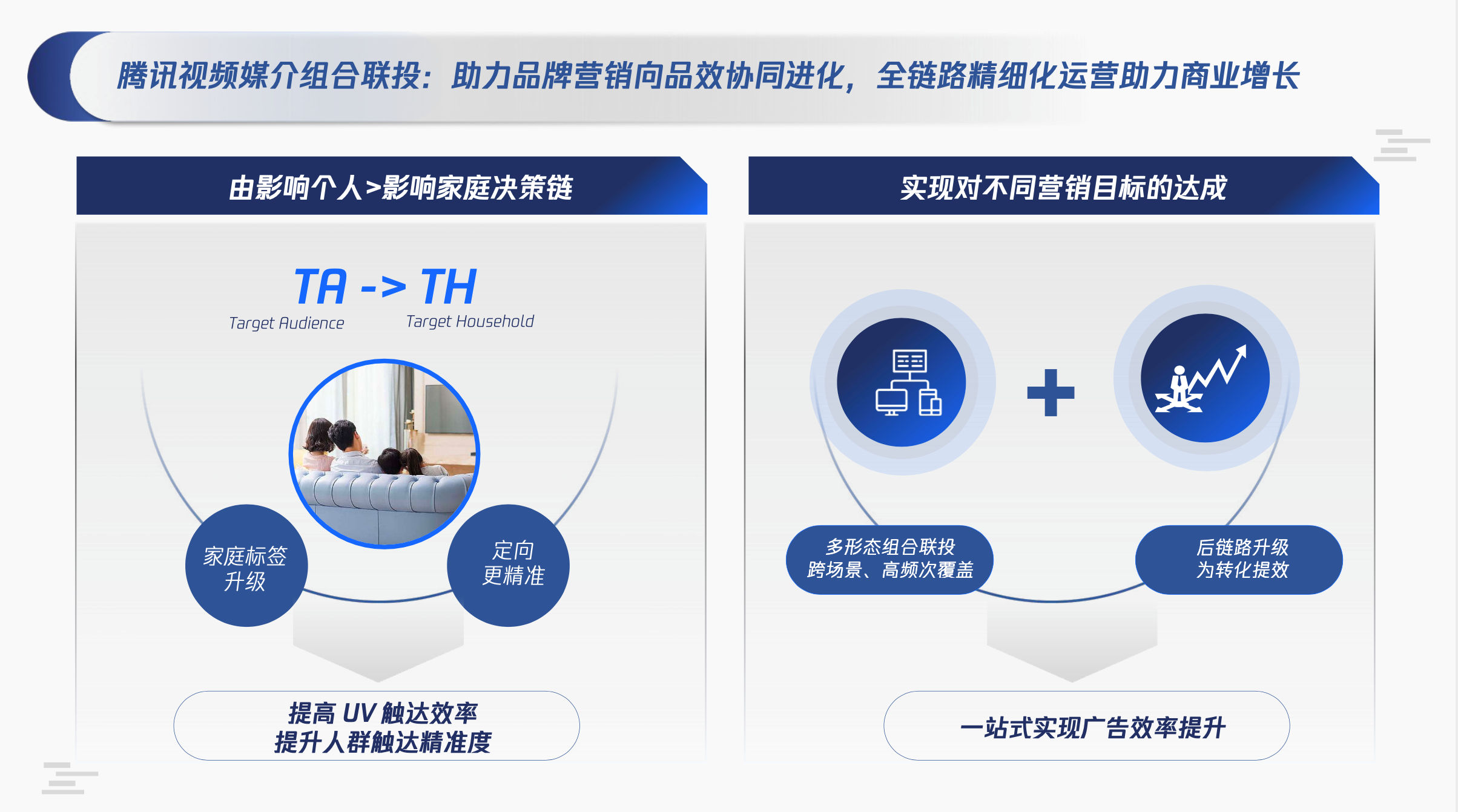 腾讯视频媒介组合产品解决方案,在品牌建设全旅程中的每个触点智取消费者——真正帮助品牌主实现品牌升级、效果进化。