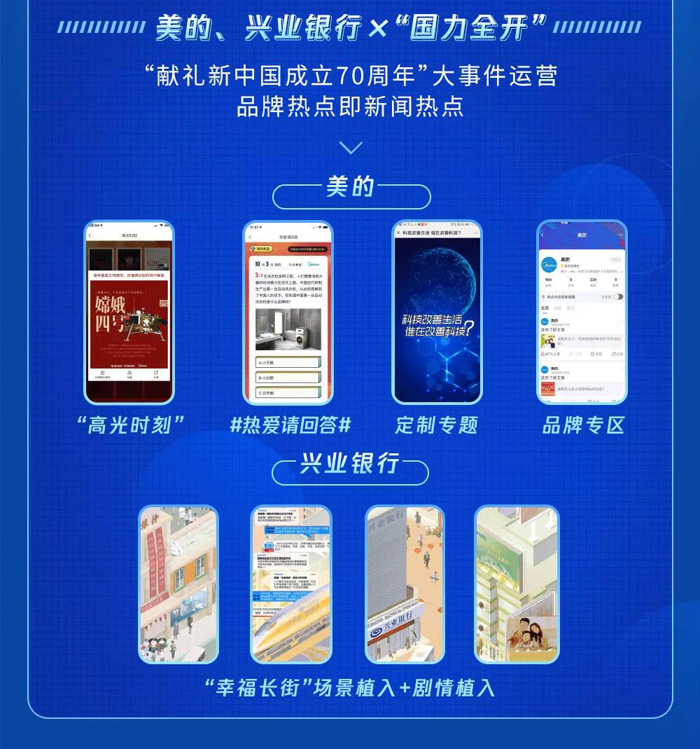 互联网时代,流量为王。热点话题与大事件自带流量,在提升品牌曝光与关注度上具有显著优势,是品牌“联姻”的首选对象。回顾2019年,“新中国成立70周年”和“春节”是不可错过的黄金话题。如何将新闻热点转化为品牌热点?如何打破固有套路,赢得话题流量,又能提升品牌形象?腾讯新闻与美的、兴业银行、碧桂园的合作案例,值得一一回味。