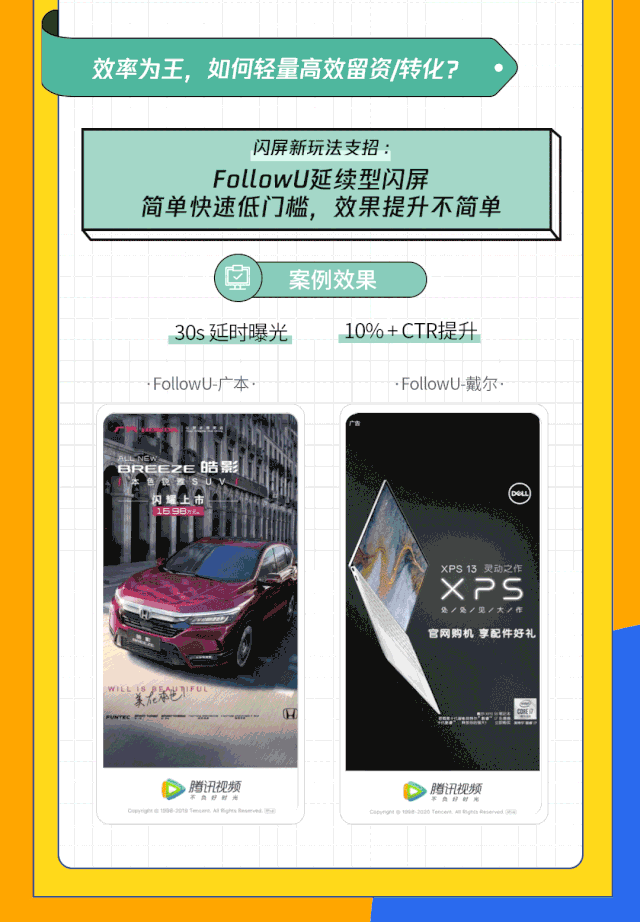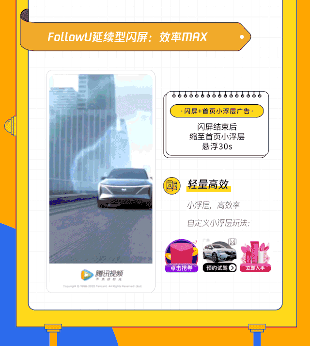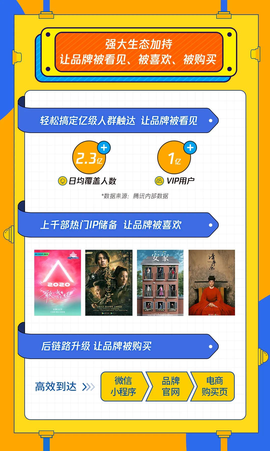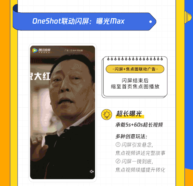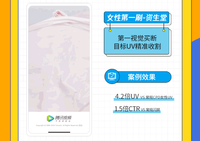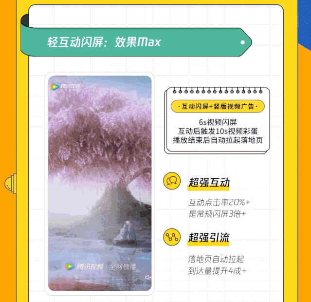 腾讯视频推出闪屏新形态,在大曝光之上探索更高的转化空间,4种全新闪屏玩法,助力品牌占领品效高地。