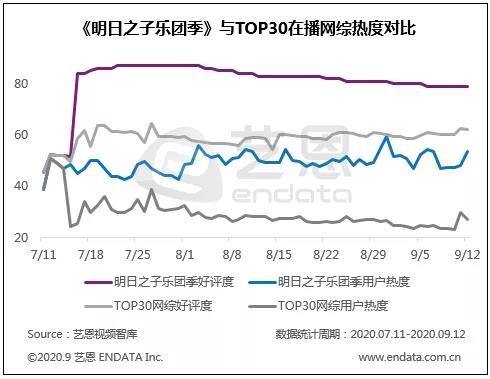(2)好评度&用户热度:《明日之子乐团季》的好评度、用户热度远高于同期在播TOP30网综的均值,优质内容收获高关注,节目用户口碑、用户互动度优势明显突出。
