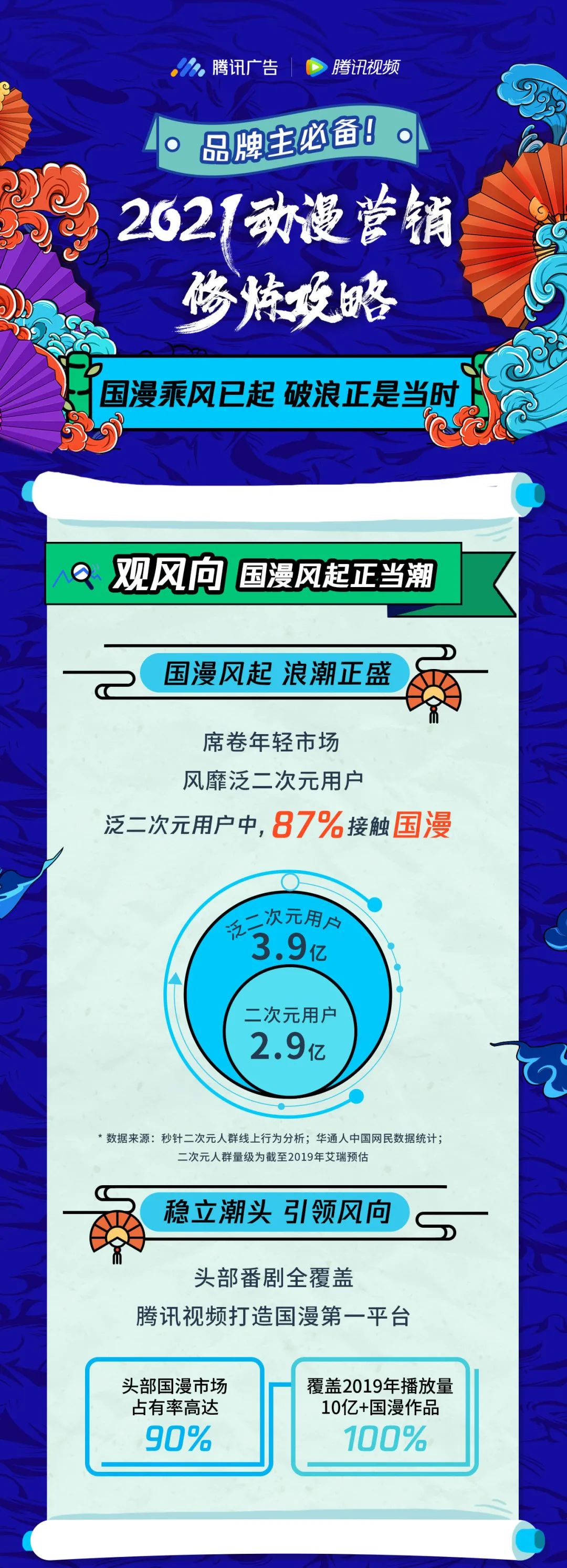 作为国漫第一平台,腾讯视频观望国漫最in“风向”、备好IP最强“弹药”、修炼营销最新“秘器”,为品牌主送上《2021动漫营销修炼攻略》,助力品牌掘金国漫,乘势增长: