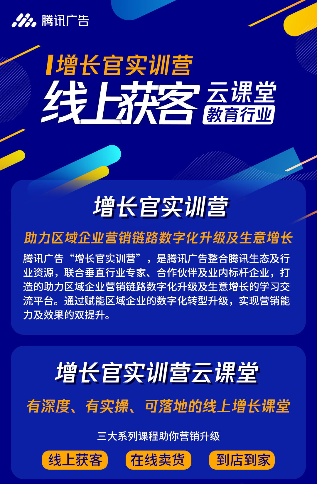 3月17日至19日,腾讯广告“增长官训练营”特邀三位教育行业实战型增长专家,结合多年经验,连续3天带来干货十足的线上直播课程。通过即时的行业数据洞见+领先的数字化营销工具介绍+前沿获客链路分析+最新成功营销案例拆解,帮助教育行业平稳破局,在疫情后时代走上增长快车道。